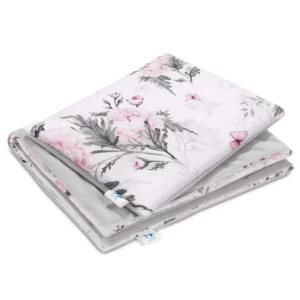 Wyprawka niemowlęca 5-elementowa – Pink Flowers grey – bawełna/velvet