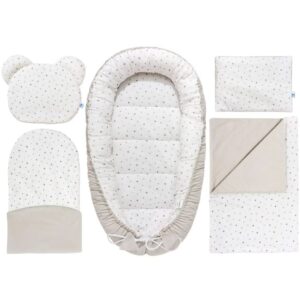 Każda mama marzy o stworzeniu idealnego, bezpiecznego i pięknego otoczenia dla swojego dziecka. Nasz zestaw 5w1 to spełnienie tych marzeń. Kokon, poduszki, kocyk i materacyk – wszystko w jednym, spójnym wzorze, który idealnie wkomponuje się w aranżację pokoiku. Poczuj, jak z każdym spojrzeniem na ten komplet ogarnia Cię fala spokoju i radości. Nie musisz już martwić się o dopasowywanie różnych elementów wyprawki – wszystko, co najważniejsze, masz w jednym, harmonijnym zestawie.