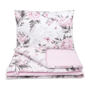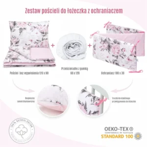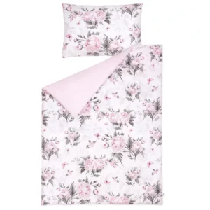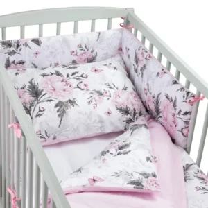Zestaw 4-elementowy pościeli do łóżeczka 90×120 z prześcieradłem i ochraniaczem Pink Flowers