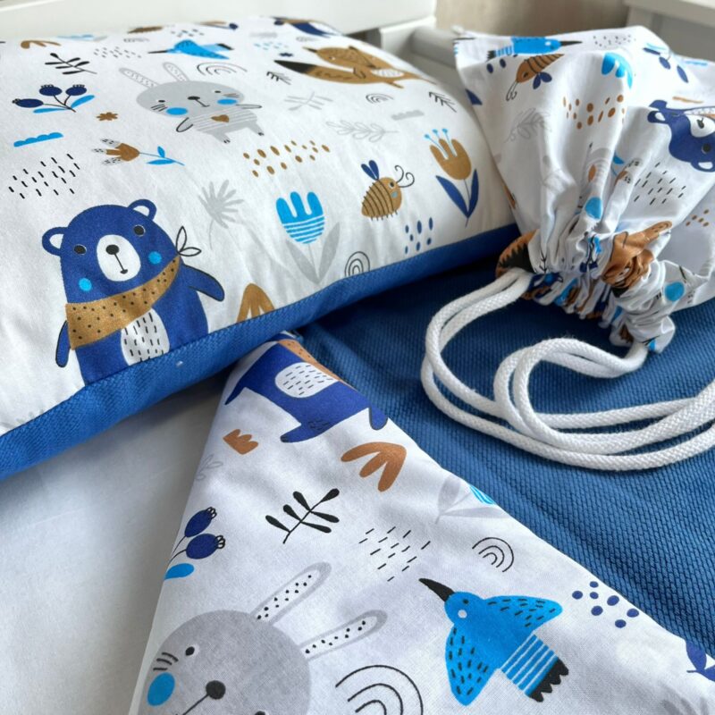 Zestaw do żłobka z płaską poduszką – Blue Bear – bawełna/velvet