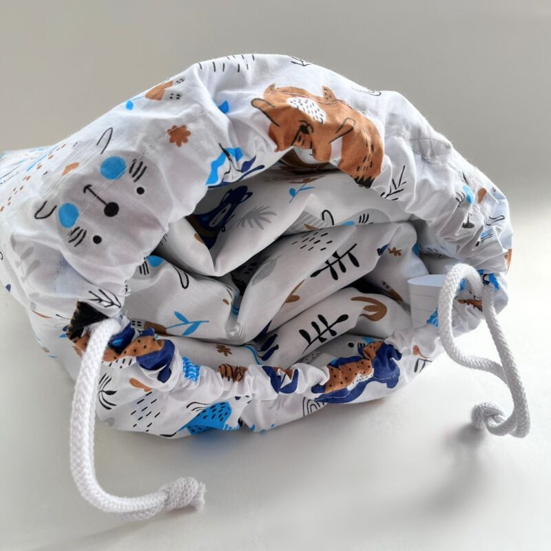 Dzięki praktycznemu, bawełnianemu workowi, codzienne przenoszenie i przechowywanie pościeli w placówce staje się proste i higieniczne. Na specjalnej metce możesz wpisać imię i nazwisko dziecka oraz nazwę grupy – to gwarancja, że zestaw zawsze wróci do swojego właściciela.