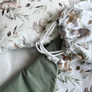 Zestaw do żłobka z puszystą poduszką – Green Groove Sage – bawełna