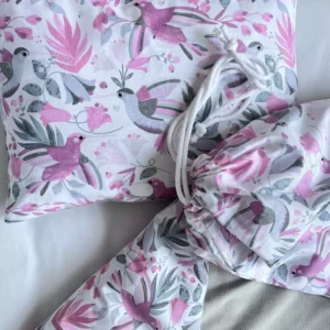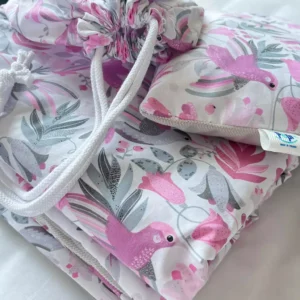 Zestaw do żłobka z puszystą poduszką – Hummingbird grey – bawełna/velvet