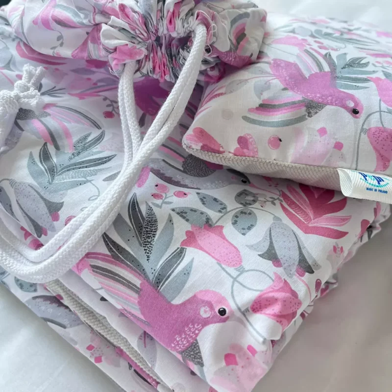 Dzięki praktycznemu, bawełnianemu workowi, codzienne przenoszenie i przechowywanie pościeli w placówce staje się proste i higieniczne. Na specjalnej metce możesz wpisać imię i nazwisko dziecka oraz nazwę grupy – to gwarancja, że zestaw zawsze wróci do swojego właściciela.