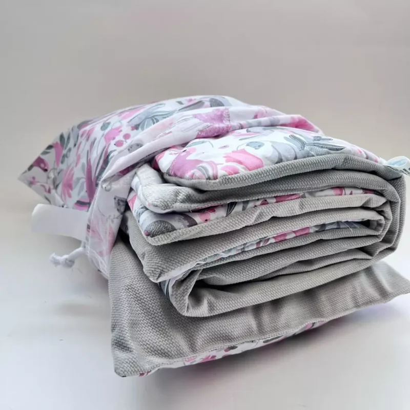 Zestaw poduszki z kocykiem to idealne rozwiązanie na różne okazje – zarówno podczas drzemek, spacerów, jak i jako wygodna mata do zabawy. Wyposażone one są w wypełnienie, które zapewni dodatkowy komfort termiczny w chłodniejsze dni, dbając o ciepło i wygodę maluszka.