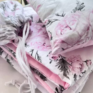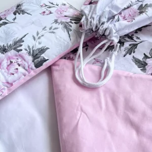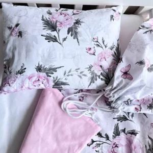 Zestaw do żłobka z puszystą poduszką – Pink Flowers – bawełna