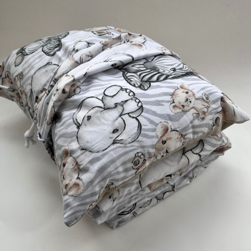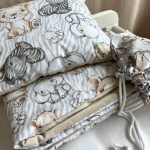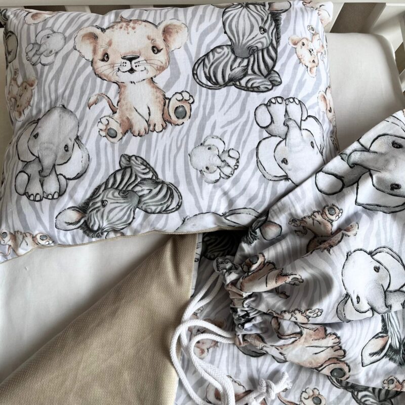 Zestaw do żłobka z płaską poduszką – Safari grey – bawełna/velvet