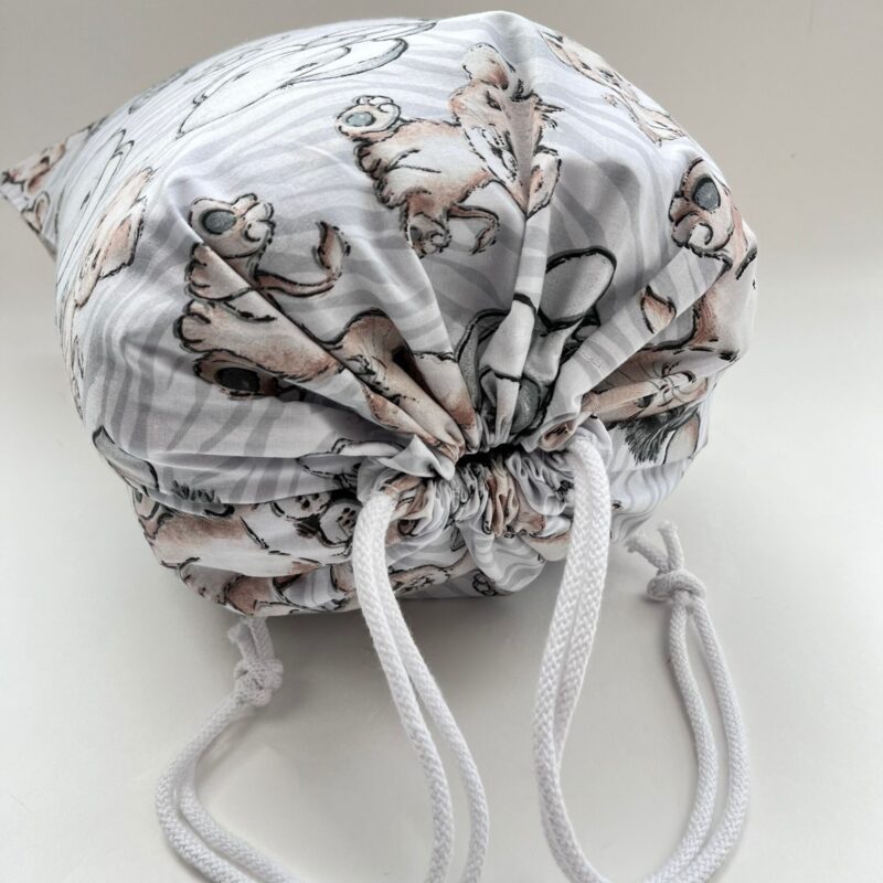 Dzięki praktycznemu, bawełnianemu workowi, codzienne przenoszenie i przechowywanie pościeli w placówce staje się proste i higieniczne. Na specjalnej metce możesz wpisać imię i nazwisko dziecka oraz nazwę grupy – to gwarancja, że zestaw zawsze wróci do swojego właściciela.