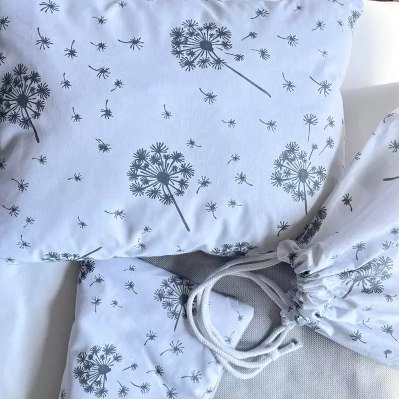 Zestaw do żłobka z puszystą poduszką – Summer Wind grey- bawełna/velvet