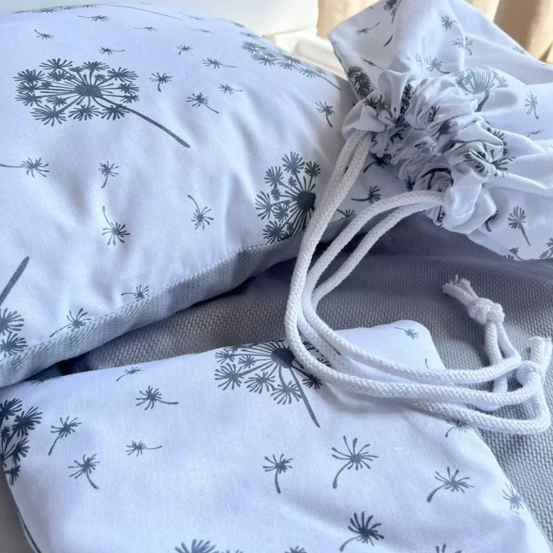 Dzięki praktycznemu, bawełnianemu workowi, codzienne przenoszenie i przechowywanie pościeli w placówce staje się proste i higieniczne. Na specjalnej metce możesz wpisać imię i nazwisko dziecka oraz nazwę grupy – to gwarancja, że zestaw zawsze wróci do swojego właściciela.