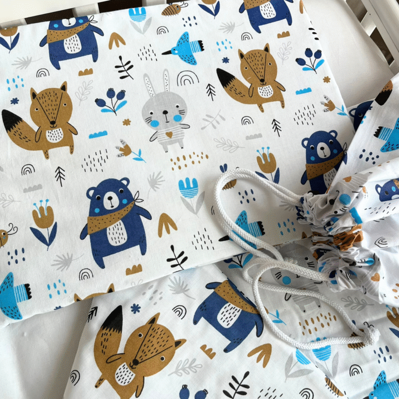 Zestaw do żłobka z płaską poduszką – Blue Bear – bawełna