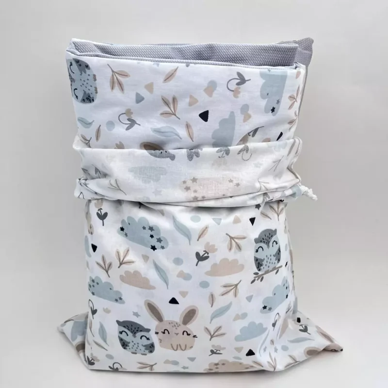 Dzięki praktycznemu, bawełnianemu workowi, codzienne przenoszenie i przechowywanie pościeli w placówce staje się proste i higieniczne. Na specjalnej metce możesz wpisać imię i nazwisko dziecka oraz nazwę grupy – to gwarancja, że zestaw zawsze wróci do swojego właściciela.
