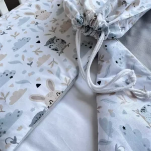 Zestaw do żłobka z płaską poduszką – Forest Friends grey – bawełna/velvet