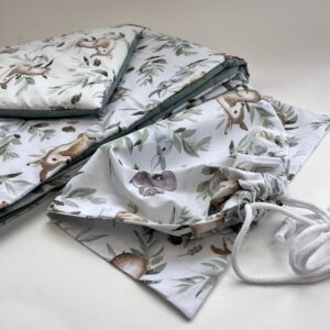 Zestaw żłobkowicza: (płaska poduszka 30×40, kołderka 75×100, worek)