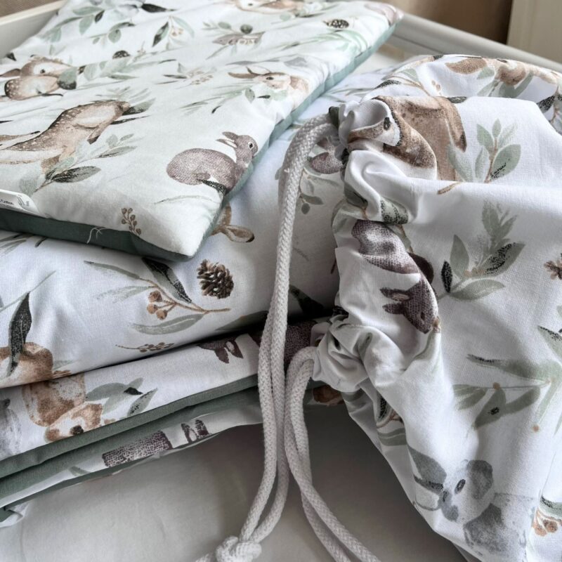 Zestaw do żłobka z płaską poduszką – Green Groove Sage – bawełna