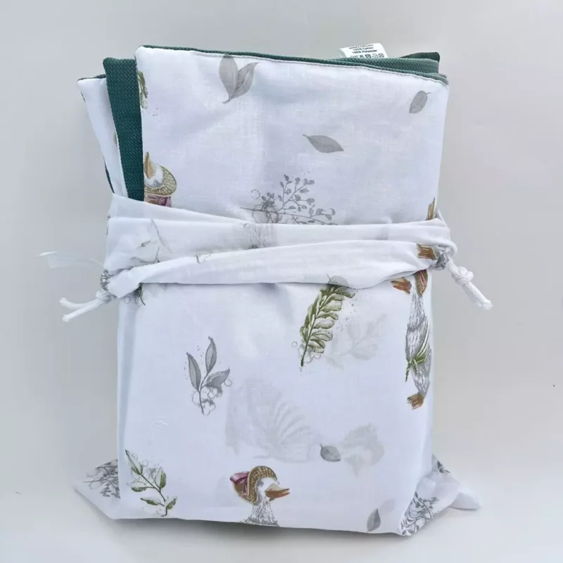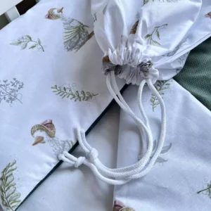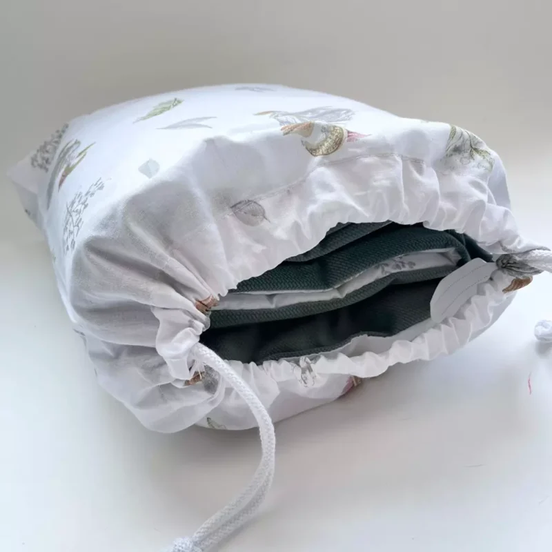 Dzięki praktycznemu, bawełnianemu workowi, codzienne przenoszenie i przechowywanie pościeli w placówce staje się proste i higieniczne. Na specjalnej metce możesz wpisać imię i nazwisko dziecka oraz nazwę grupy – to gwarancja, że zestaw zawsze wróci do swojego właściciela.