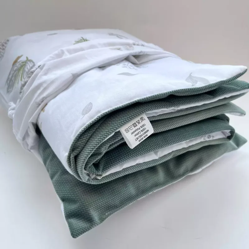 Zestaw do żłobka z płaską poduszką – Lady Goose sage – bawełna/velvet