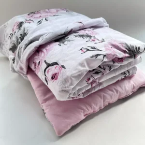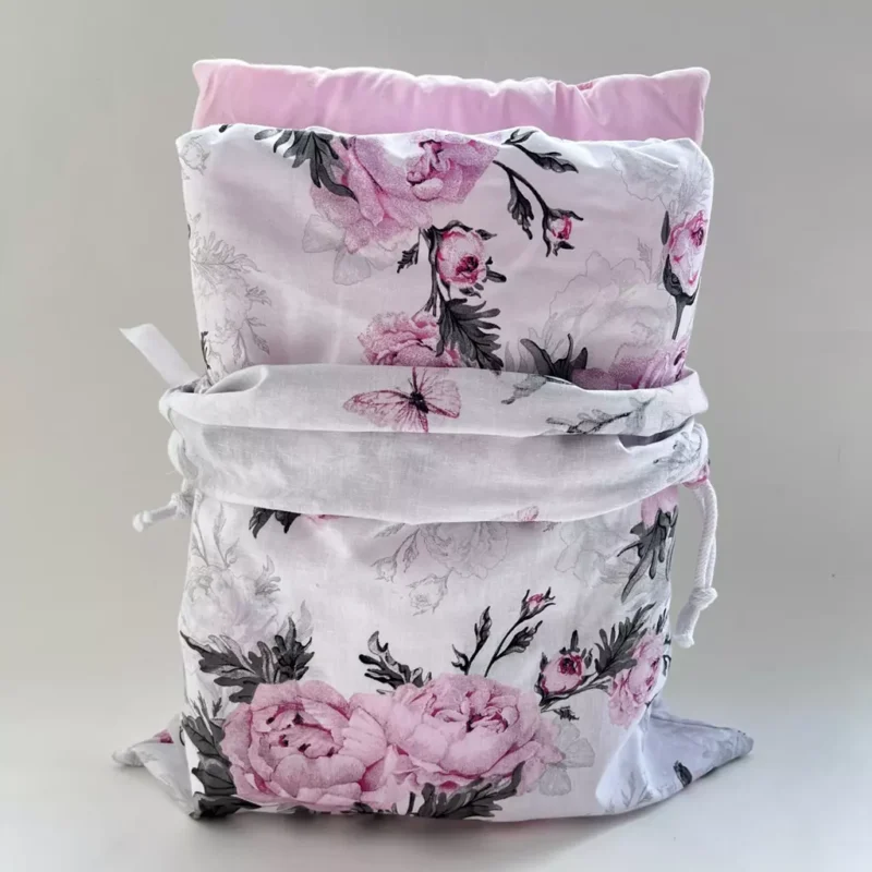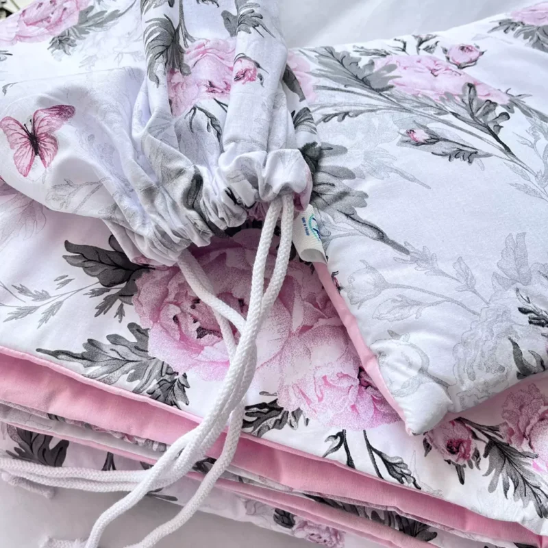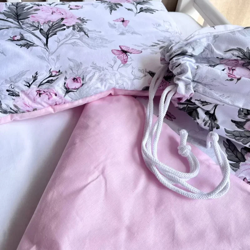 Zestaw do żłobka z płaską poduszką – Pink Flowers – bawełna
