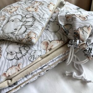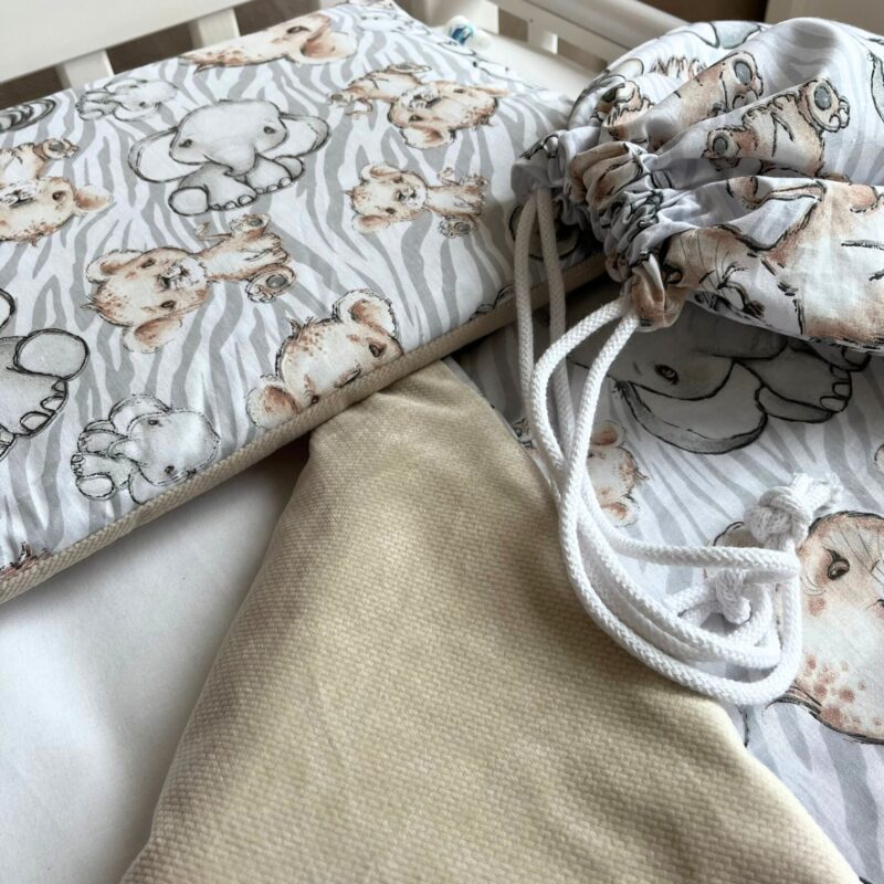 Zestaw do żłobka z płaską poduszką – Safari grey – bawełna/velvet