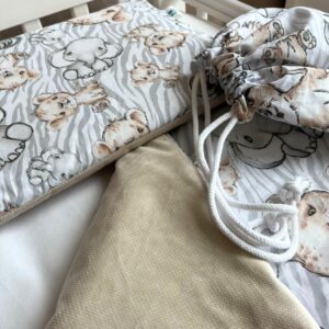 Zestaw do żłobka z płaską poduszką – Safari cappucino – bawełna/velvet