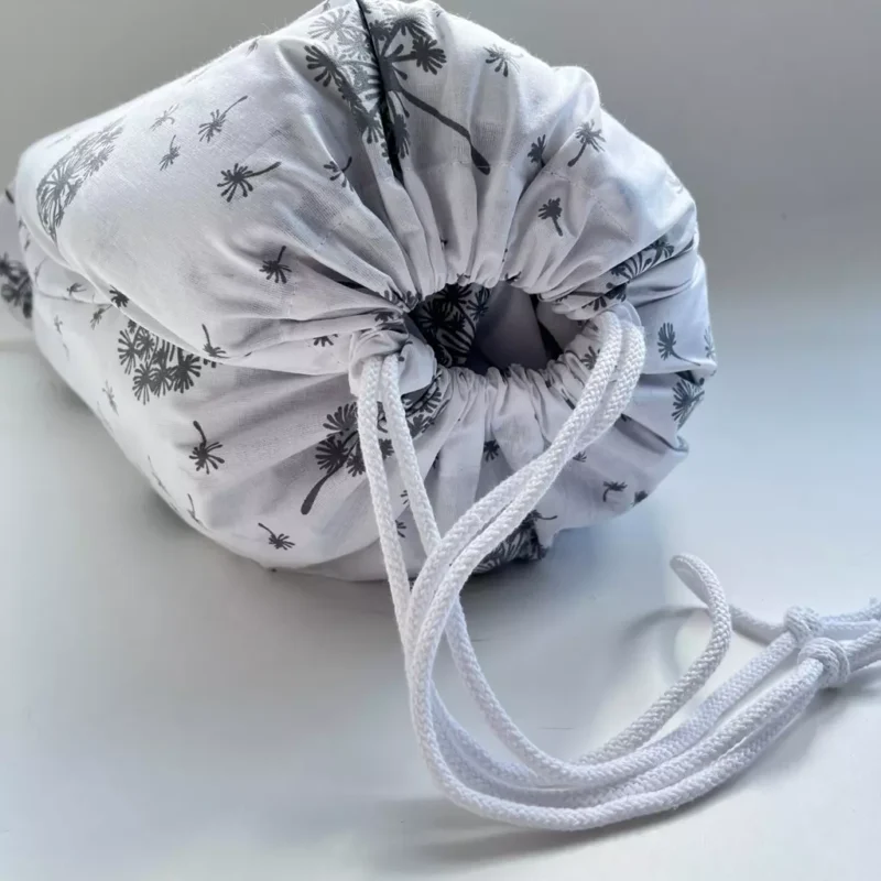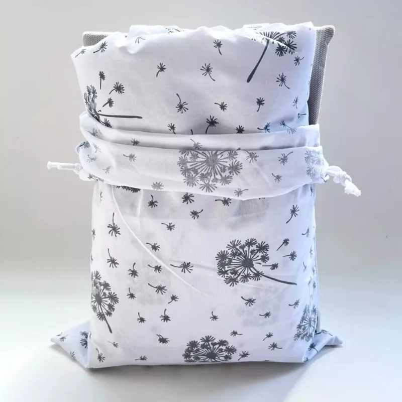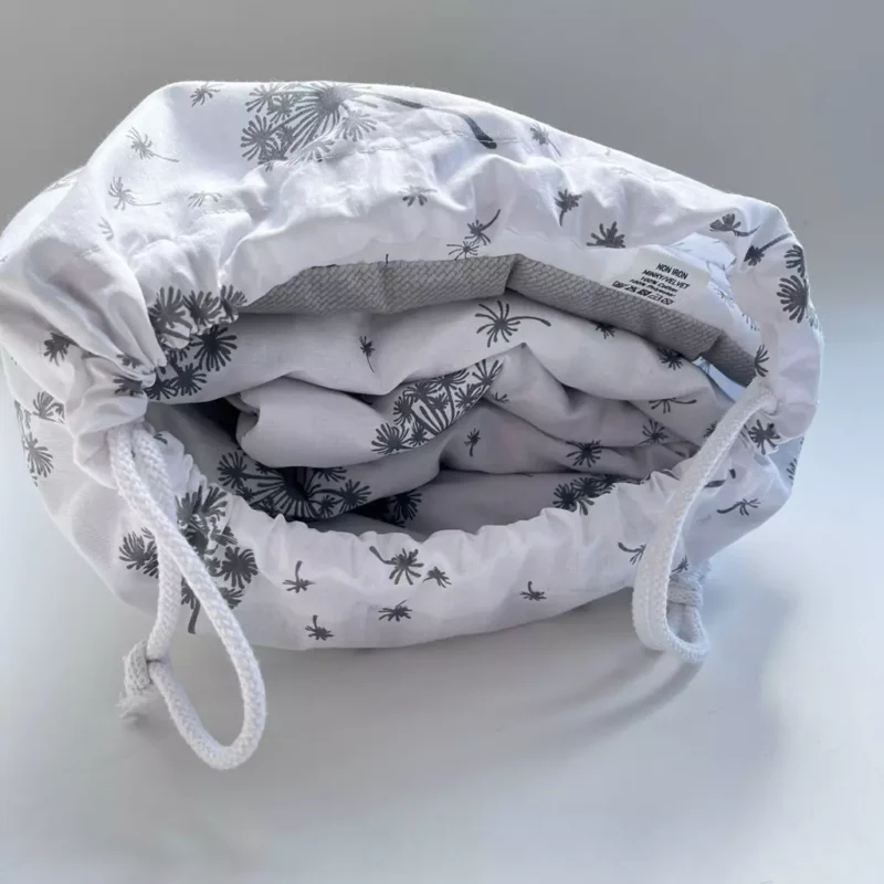 Dzięki praktycznemu, bawełnianemu workowi, codzienne przenoszenie i przechowywanie pościeli w placówce staje się proste i higieniczne. Na specjalnej metce możesz wpisać imię i nazwisko dziecka oraz nazwę grupy – to gwarancja, że zestaw zawsze wróci do swojego właściciela.