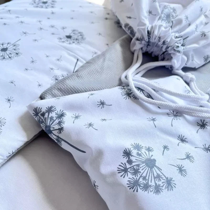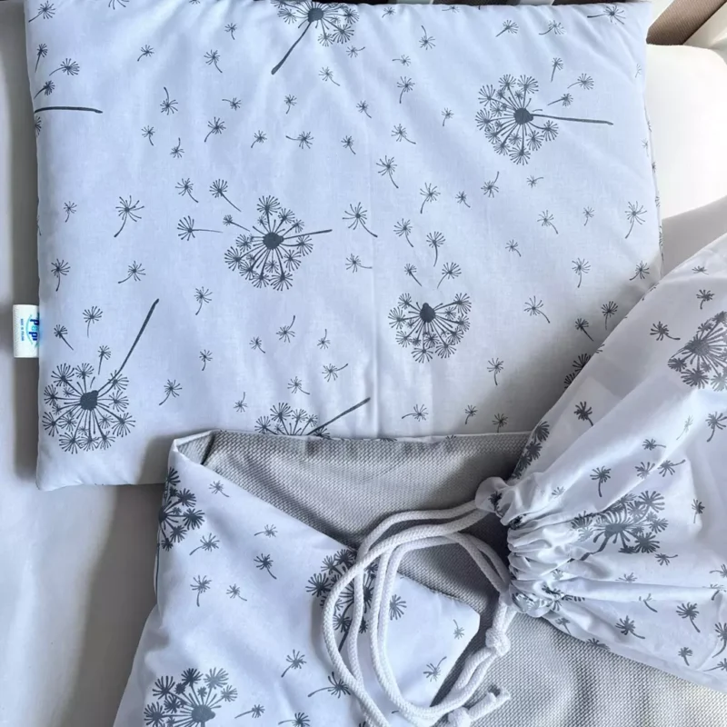 Zestaw do żłobka z płaską poduszką – Summer Wind grey- bawełna/velvet