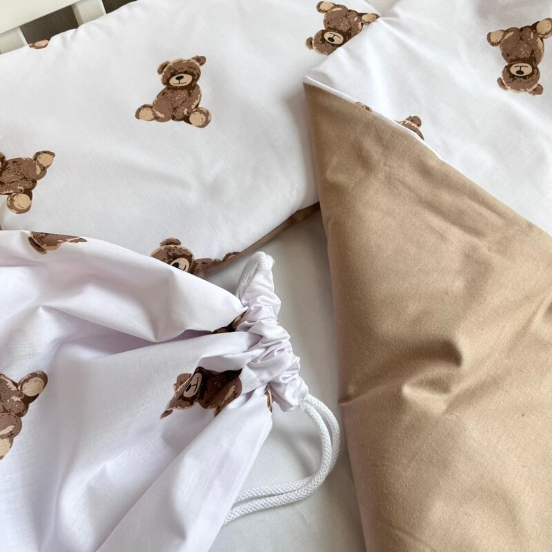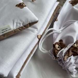 Zestaw do żłobka z płaską poduszką Sweet Teddy cappucino – bawełna