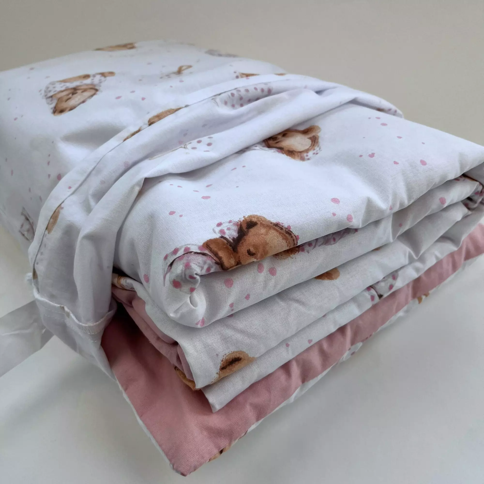 Zestaw do żłobka z płaską poduszką – White Sleeping Teddy Bear – bawełna