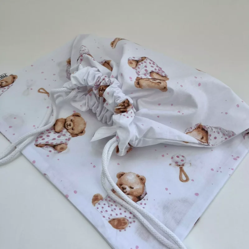 Dzięki praktycznemu, bawełnianemu workowi, codzienne przenoszenie i przechowywanie pościeli w placówce staje się proste i higieniczne. Na specjalnej metce możesz wpisać imię i nazwisko dziecka oraz nazwę grupy – to gwarancja, że zestaw zawsze wróci do swojego właściciela.