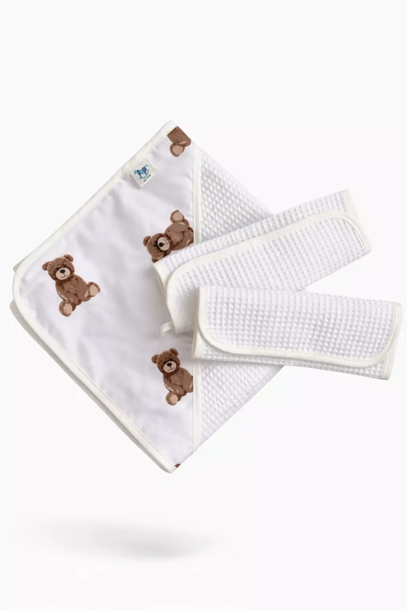 Zestaw kąpielowy ręcznik z kapturem ivory i 2 małe ręczniki Sweet Teddy
