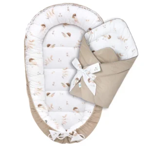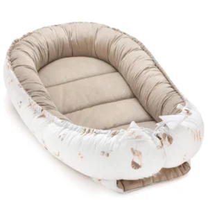 Miękki kokon niemowlęcy tworzy przytulne, doskonale ograniczone miejsce do snu i odpoczynku. Jego kształt i miękkie brzegi dają dziecku poczucie bezpieczeństwa, przypominające warunki znane z brzucha mamy. Możesz go bezpiecznie używać w łóżeczku rodziców, na kanapie, dywanie, czy zabrać ze sobą w podróż, by maluch zawsze czuł się komfortowo.