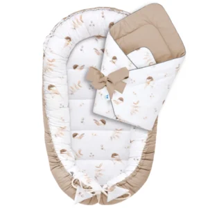 Zestaw kokon z rożkiem – Lovely Bird cappucino – bawełna