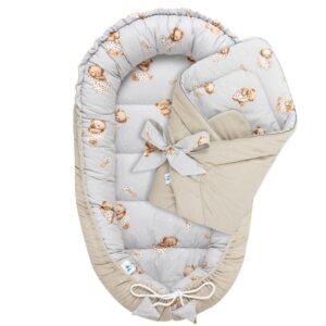 Zestaw kokon z rożkiem – Sleeping Teddy Bear cappucino – bawełna/velvet