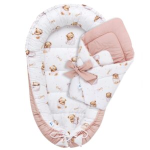 Zestaw kokon z rożkiem – White Sleeping Teddy Bear – bawełna