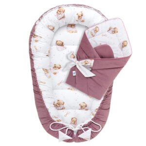 Zestaw kokon z rożkiem – White Sleeping Teddy Bear old rosa – bawełna/velvet