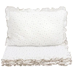 Poduszka muślinowa z falbanką 40×60 oraz kołdra 120×90 to wyjątkowy zestaw, zaprojektowany z myślą o komforcie i bezpieczeństwie Twojego dziecka. Wykonana z najwyższej jakości muślinu double gauze (100% bawełna), muślin charakteryzuje się delikatnością w dotyku oraz trwałością. Elegancki design, wzbogacony o urocze falbanki, sprawia że zestaw jest nie tylko funkcjonalnym elementem wyposażenia, ale także piękną ozdobą dziecięcego pokoju.