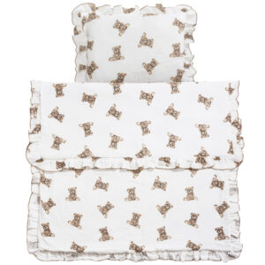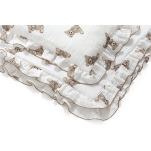 Zestaw Muślinowy z falbankami Premium kocyk 75×100 i poduszka 30×40 Sweet Teddy