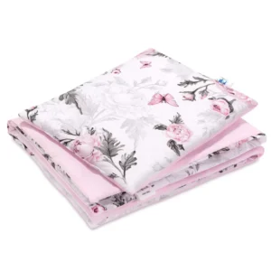 Pościel z wypełnieniem – kołderka 55×75 i poduszka 25×35 – Pink Flowers – bawełna