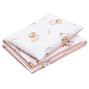 Pościel z wypełnieniem – kołderka 55×75 i poduszka 25×35 – White Sleeping Teddy Bear – bawełna