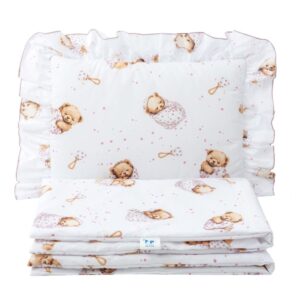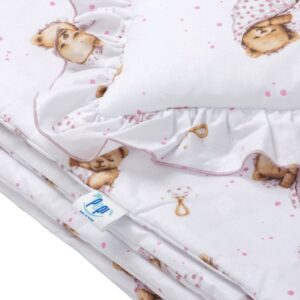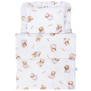 Pościel z wypełnieniem i falbanką – kołderka 55×75 i poduszka 25×35 – White Sleeping Teddy Bear – bawełna